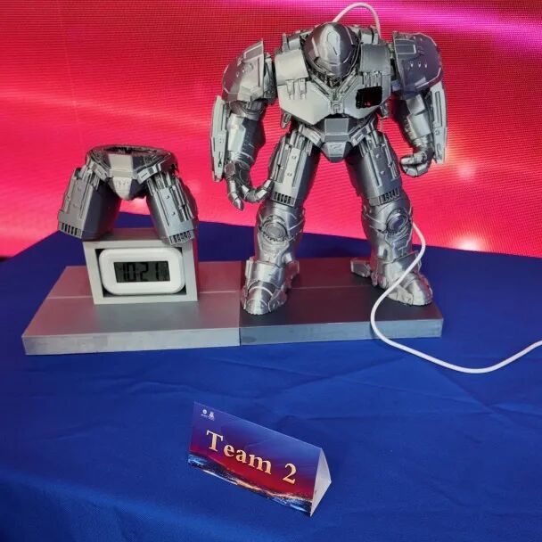 作品灵感源自影视作品The Avengers(《复仇者联盟》),基于3D打印制成中空榫卯结构可拆卸钢铁侠模型,中空区域嵌入集成手势识别与语音播报功能的PCB板,实现“顺时针触发音乐、逆时针关闭”的交互逻辑。设计初衷为缓解厌学情绪、提升专注力,当前版本肢体无法自由活动,后续计划升级传动结构实现关节灵活运动。